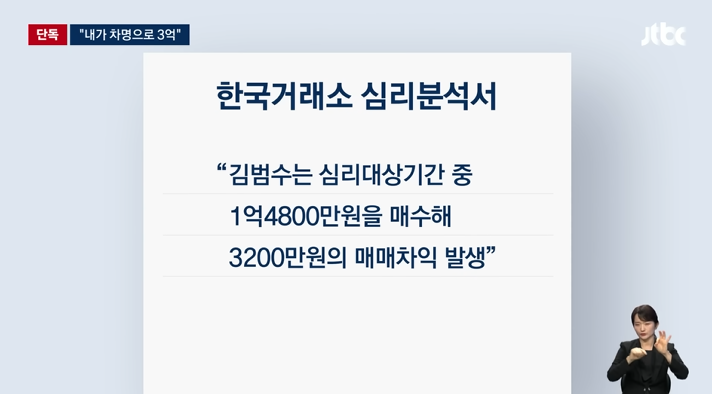 김범수 명의로, 3200만원 수익을 냄.
