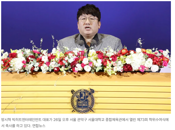 BTS 키운 방시혁 “내 원동력은 분노”…서울대 졸업식 축사