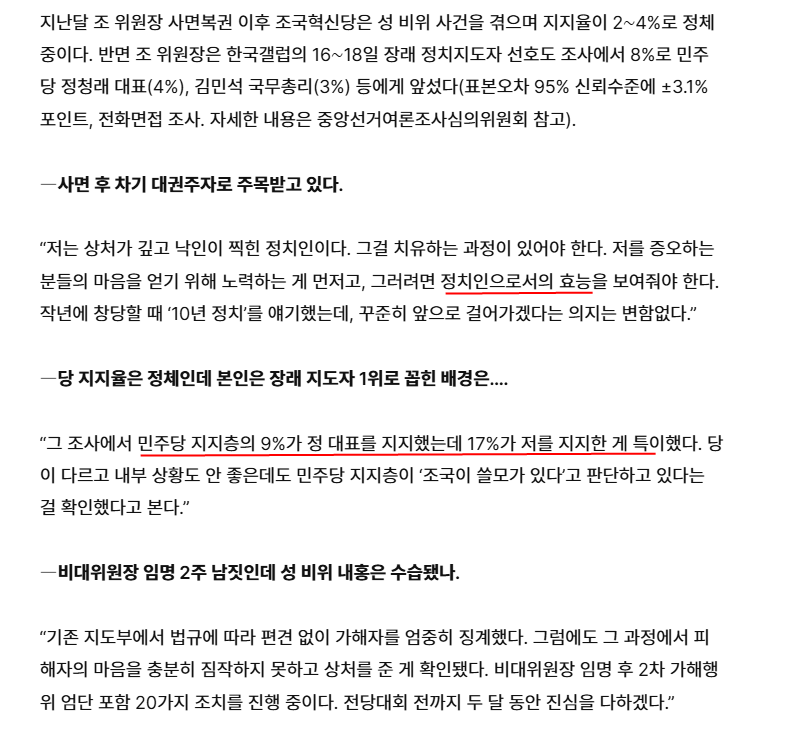 조국혁신당은 민주당과 정책과 정치이념에서 거의 차이가 없고, 99.99% 동일하다. 하나의 정당으로 합치는 게 한국의 다원적 민주주의 발전에 도움이 된다.