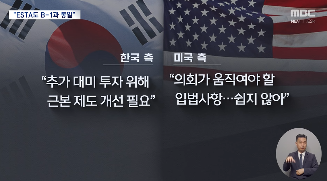 우리 정부는 "추가적인 대미 투자를 위해 근본적인 제도 개선이 필요하다"고 지적했지만 미국 측은 "의회가 움직여야 할 입법사항으로 쉽지 않은 과제"라며 다소 거리를 뒀습니다.