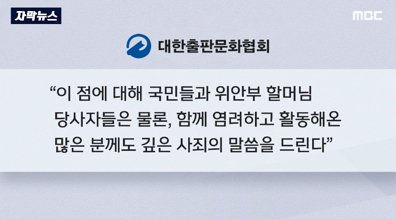 그러면서 "이 점에 대해 국민들과 위안부 할머님 당사자들은 물론, 함께 염려하고 활동해온 많은 분께도 깊은 사죄의 말씀을 드린다"며 "향후 수상자 선정 과정에서 국민과 출판인들의 의견이 폭넓고 올바르게 반영될 수 있도록 하겠다"고 덧붙였습니다.