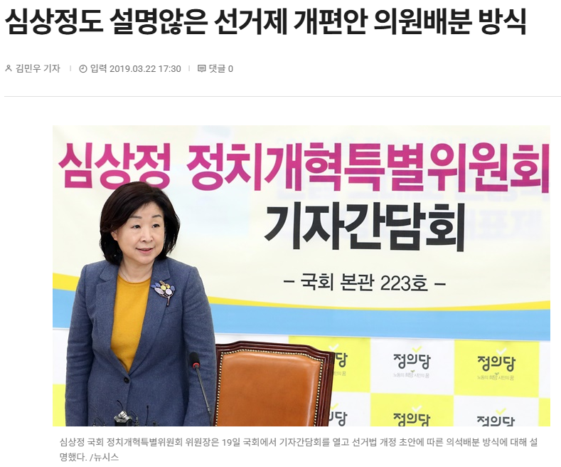 1. 2019년 3월 18일. 심상정 '선거구 획정 방식' , '비례대표 의석수 산출 방식'에 대한 질문에