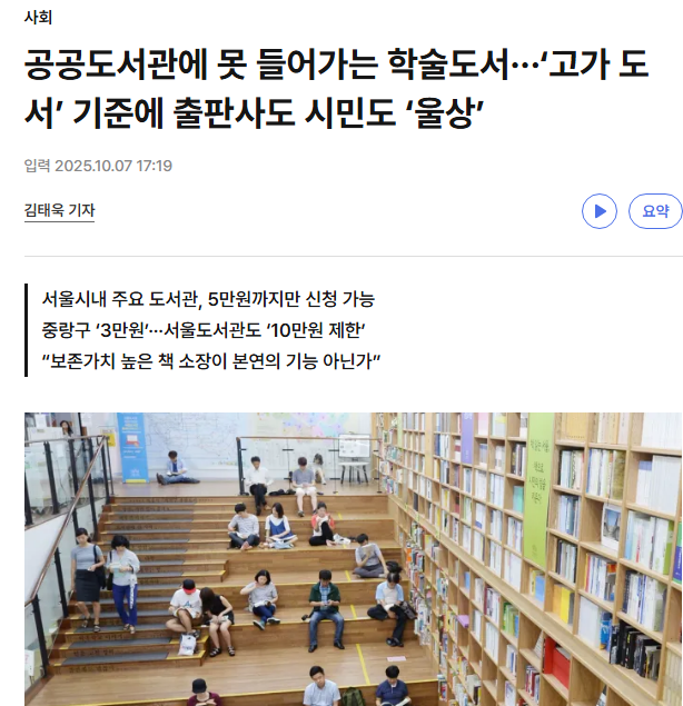 공공도서관에 못 들어가는 학술도서···‘고가 도서’ 기준에 출판사도 시민도 ‘울상’