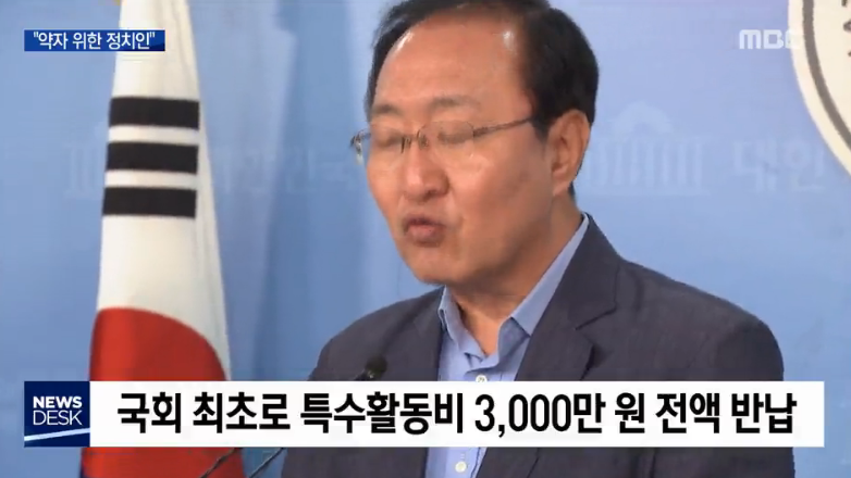 "오늘 저의 특수활동비 반납이 미래의 국회를 좀 더 투명하게 만드는데 밑거름이 되기를 바랍니다."