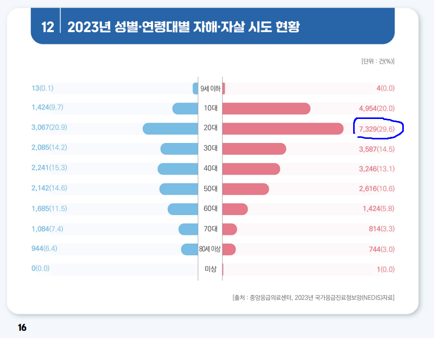 이와는 다른 측면에서 20대 여성의 자살 시도률은 최고 높고, 그 다음 10대 여성이다.