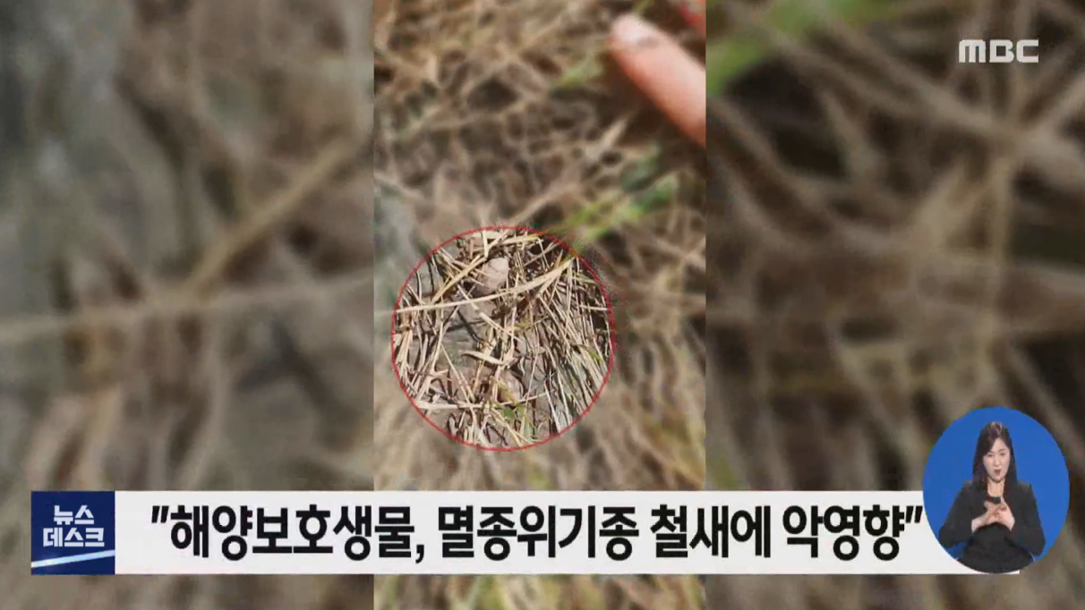 - 해양보호생물인 대추귀고둥과 흰발농게 등 다양한 바다 생물에 악영향
