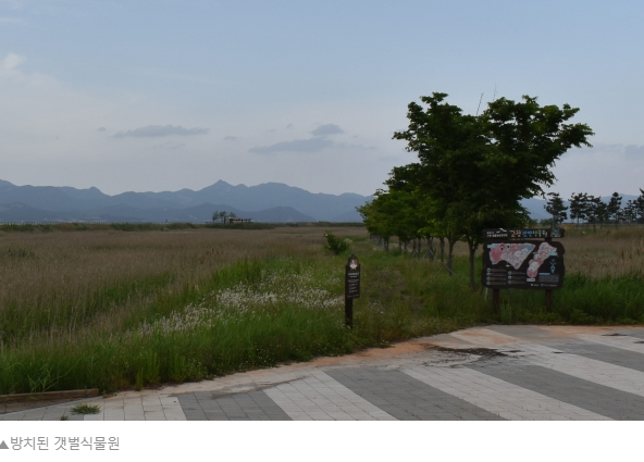 그러나 갯벌 관리는 허술하기 짝이 없다. 취재팀은 고창갯벌센터가 있는 심원면 일대를 살펴보았다. 고창군은 심원면 두어리 일원 폐간척지에 갯벌식물원을 조성했다. 이곳은 간척지는 제방이 일부 무너져 바닷물이 들어오던 곳인데 농어촌공사는 다시 제방을 보수하고 수문을 설치했다.