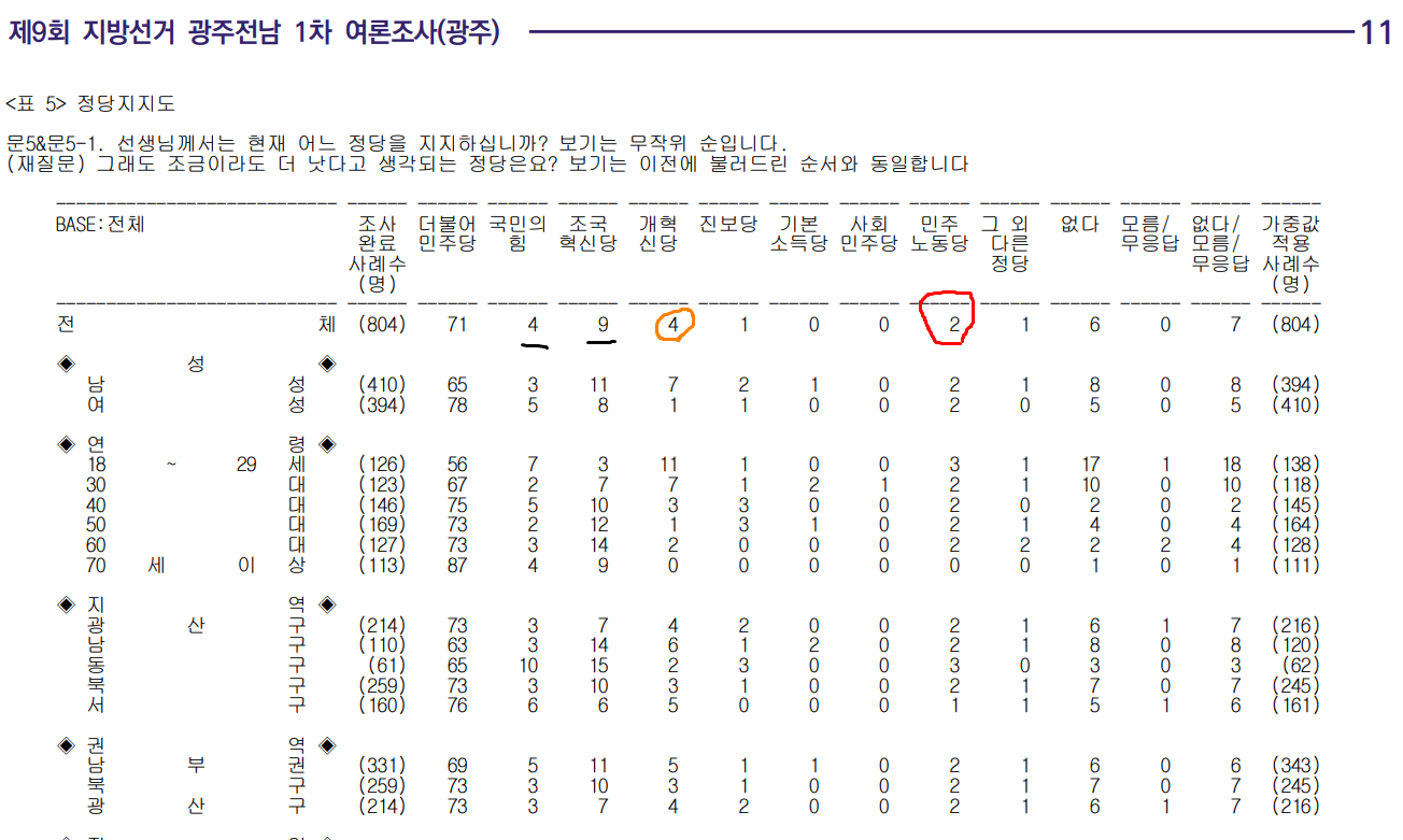 광주광역시 정당 지지도