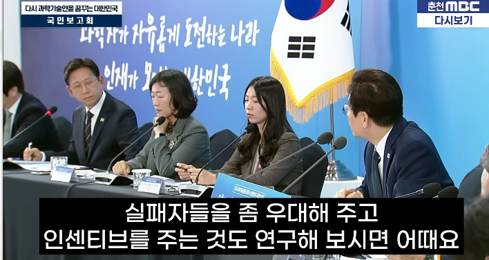 정책 검증. 이재명 공대생,엔지니어, 과학자, '실패자 펀드' 조성 + 성과 중심의 보상 2가지 정책 제시.