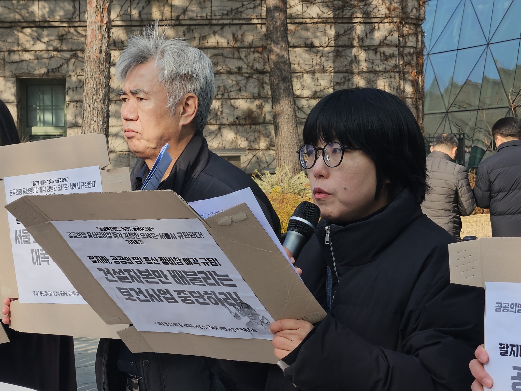 최하은 민달팽이유니온 활동가는 거대한 공공부지에 서울시가 내놓은 공공임대주택 공급 계획이 고작 525호에 불과하다고 비판했다. 서울에서 전세사기 피해자로 인정받은 인원이 이미 1만 명을 넘었고, 서울시의 주거정책인 청년안심주택에서도 전세사기 피해자가 발생하고 있다며, 공공부지 개발은 사회 문제 해결을 위한 공간으로 계획하고 주거권을 중심에 두고 설계·개발되어야 한다고 강조했다.