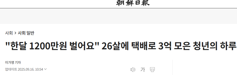 “한달 1200만원 벌어요” 26살에 택배로 3억 모은 청년의 하루