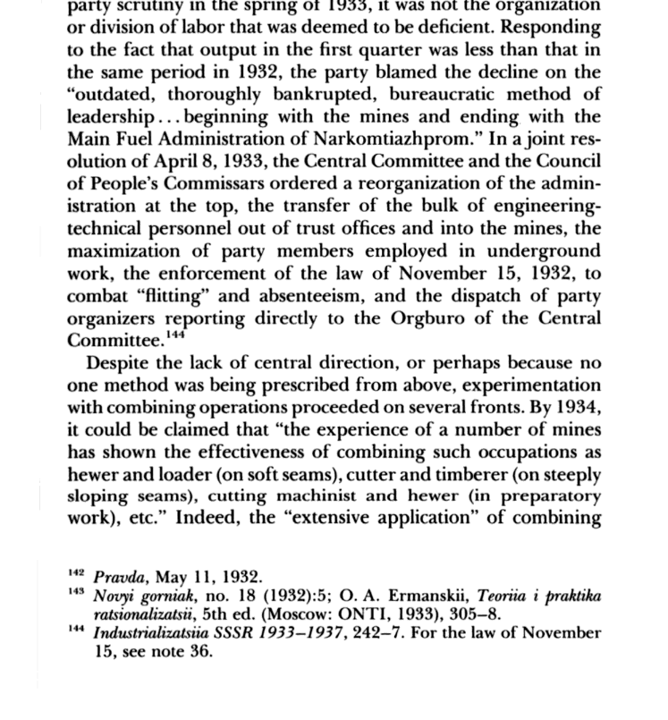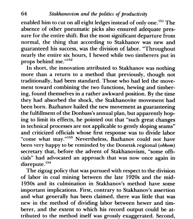 "소련의 탄광 노동은 엄청나게 분화되었다" 고 자신있게 말함.