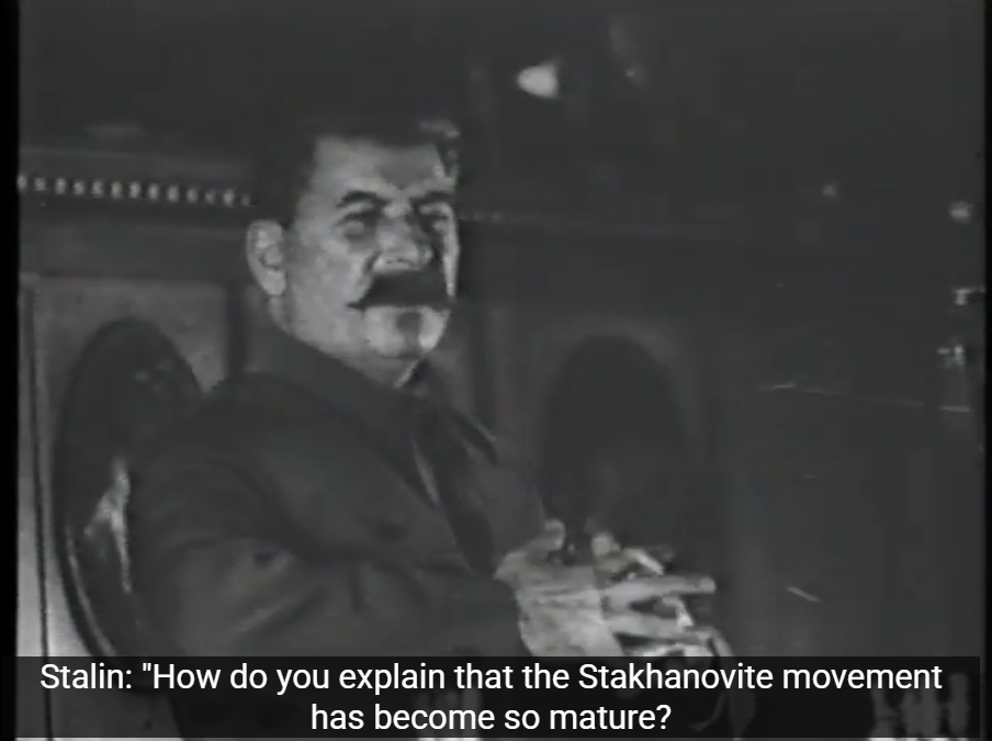 Stalin "How do you explain that the Stakhanovite movement has become so mature? what reasons made it spread across our entire economy, to all regions and oblasts of our great country? Where are the reasons? There are many of these reasons. I can point to several - namely, life has become better, comrades, life has become happier. When life is happy, work goes well."