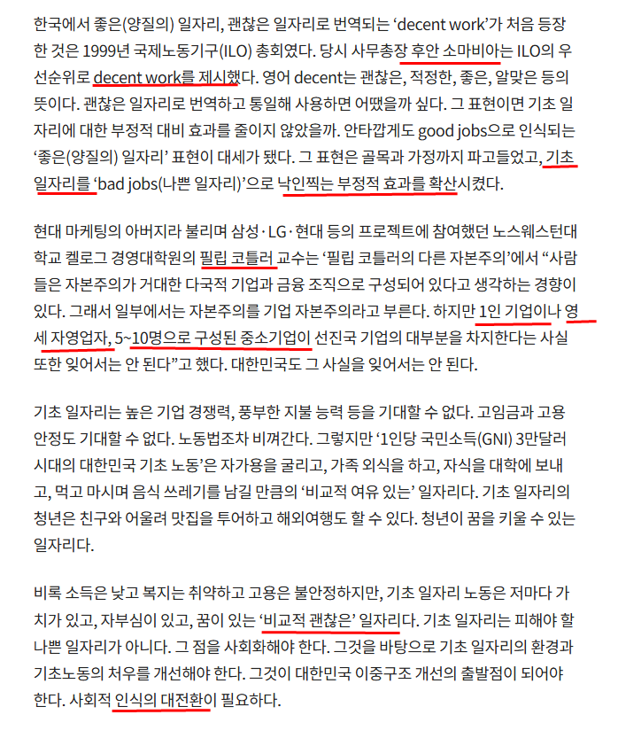 2) 필립 코틀러 역시 그러한 비정규직, 5인 미만 사업장이 자본주의의 주류이자 기초라고 주장했다.