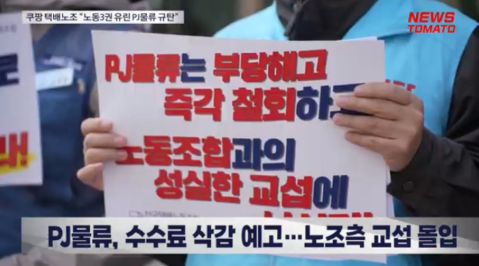 이에 노조 측은 "쿠팡CLS 영업점 PJ물류가 단결권, 단체교섭권, 단체행동권 등 헌법이 보장하는 노동3권을 전면적으로 유린했다"고 주장했습니다.
