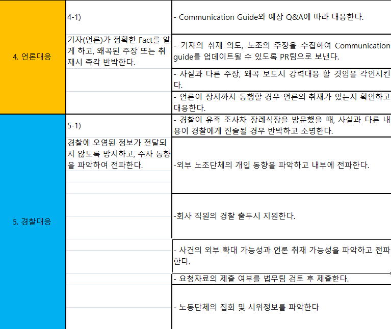 4단계 '언론 대응'의 미션은 "기자(언론)가 정확한 팩트를 알게 하고, 왜곡된 주장 또는 취재 시 즉각 반박한다"이다.