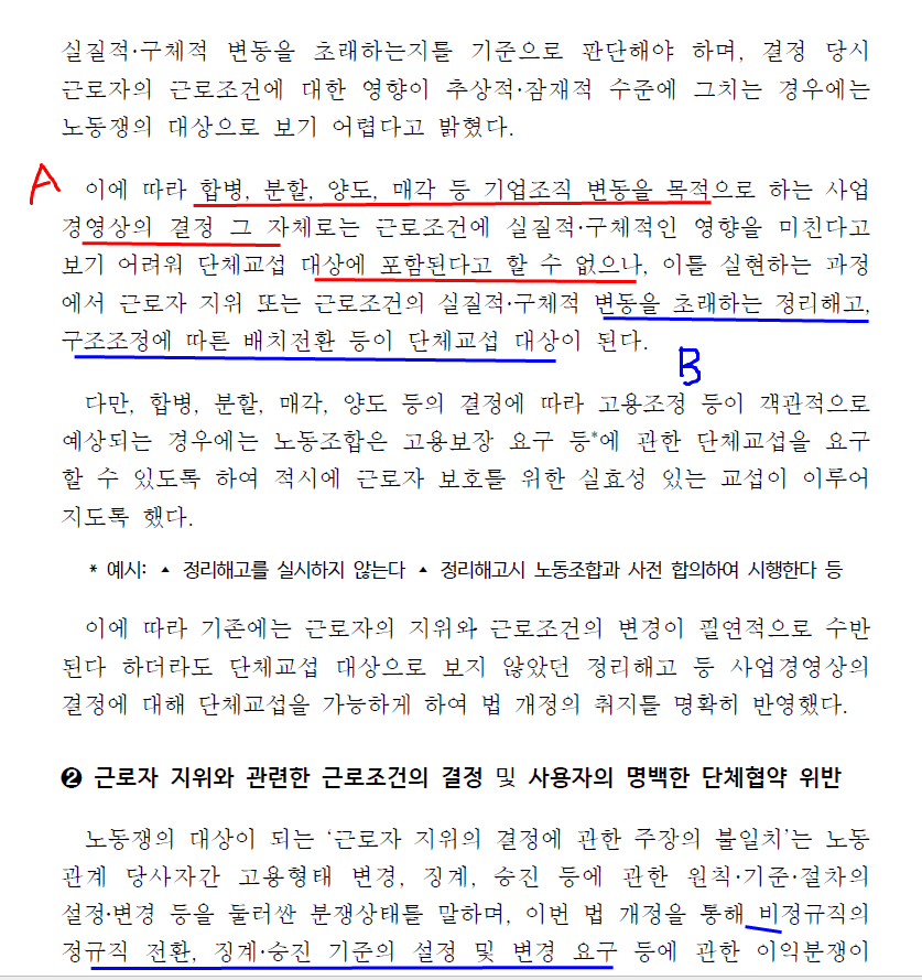 2. 이러한 사업경영상의 결정을 실현하는 과정에서 근로자 지위 또는