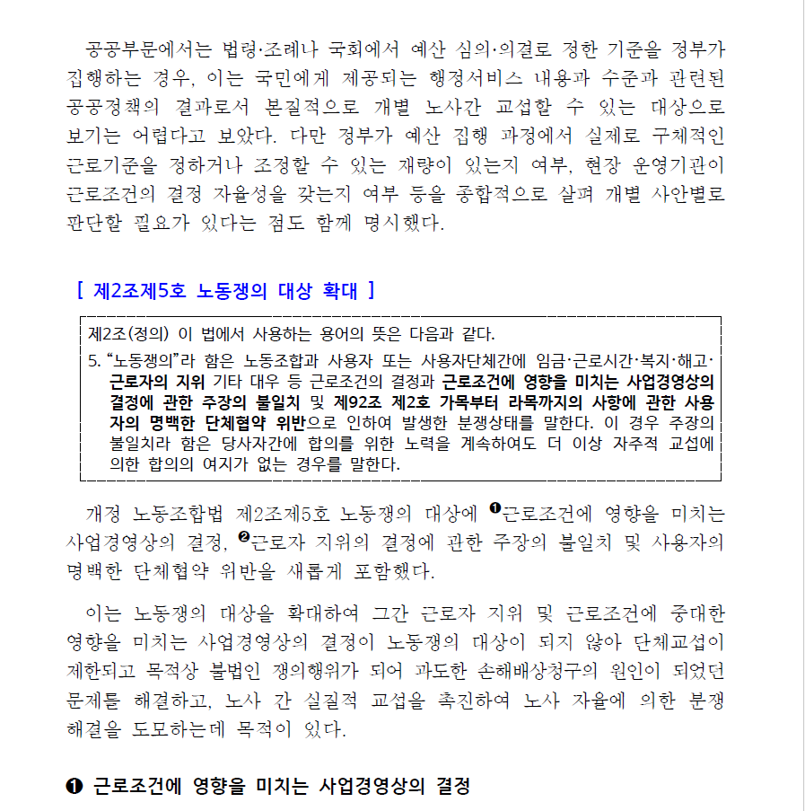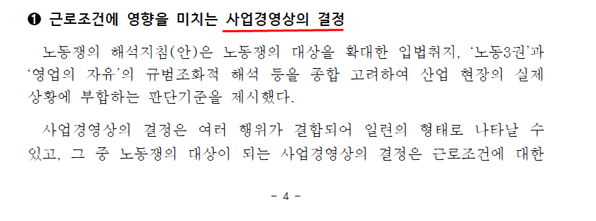 김영훈 행정지침서.노동쟁의 대상에서, 노동자 권한이 너무 적다.