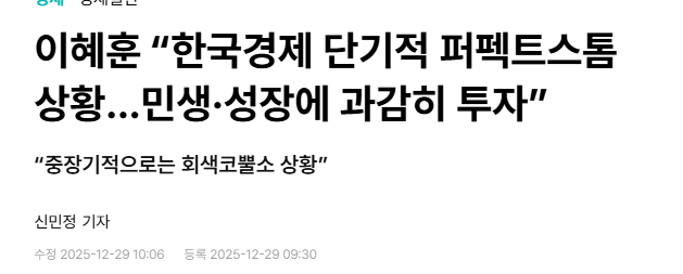 이혜훈 “한국경제 단기적 퍼펙트스톰 상황…민생·성장에 과감히 투자”
