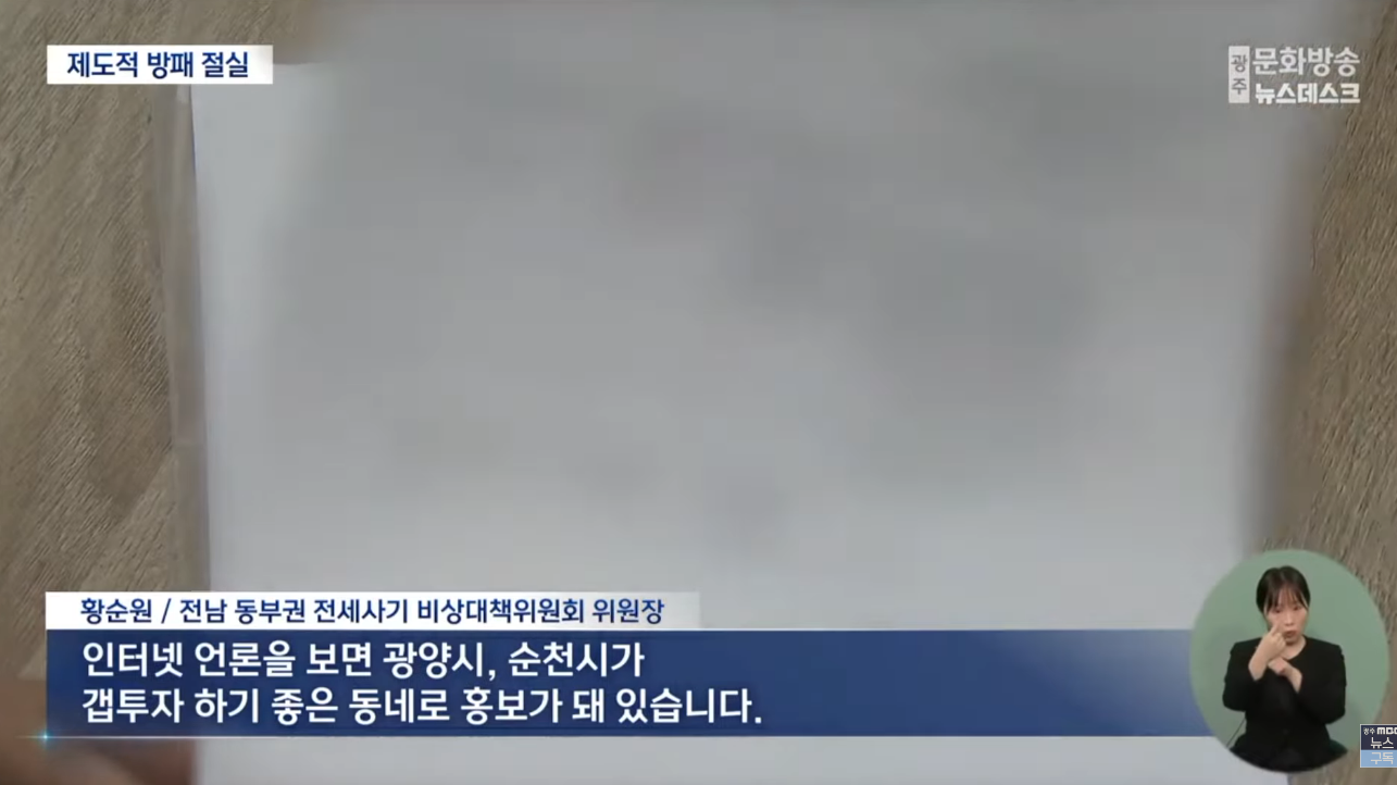 "인터넷 언론을 보면 광양시, 순천시가 갭투자 하기 좋은 동네로 홍보가 돼 있습니다. 이 부분은 사실 지자체나 도에서 먼저 선제적으로 임대 사업자의 관리 감독이 좀 중요하다고 생각합니다."