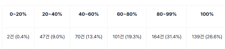 위에서 정리한 피해자대책위 요구사항 1번인 ‘최소보장 방안’ 도입의 취지는 피해자 회복률 편차가 커지는 것을 줄여주자는 것이다. 12월 17일 국토교통부가 국회에 보고한 바에 따르면 LH가 피해주택을 매입하고, 경매차익(LH 감정가 - 경매 낙찰가)을 산정한 523호에 대해 피해회복률 통계를 내봤을 때 40%도 회복하지 못한 경우가 9.4%가 된다. 피해자가 모든 권리를 LH에 넘겨 피해주택 매입을 완료한 다음에야 피해회복률이 최종 산정되는데, 피해자에 따라 회복률 편차가 크다면 형평성 문제가 커질 수밖에 없다.