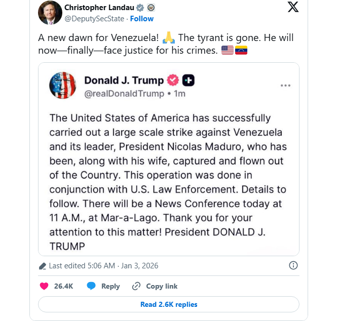 Amid the immense confusion surrounding the US strikes on Venezuela, the seizure of the president, Nicolás Maduro, and Donald Trump’s announcement that the US will “run” the country and “take back the oil”, one thing is clear – they set a truly chilling precedent. The US has a grim history of interference, invasion and occupation in the region, but the early hours of Saturday saw its first major military attack on South American land. “American dominance in the western hemisphere will never be questioned again,” Mr Trump declared. The decision to unilaterally attack another country and abduct its leader – days after he publicly sought an off-ramp – has still wider repercussions. It should alarm us all.