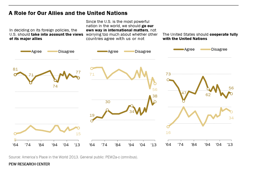 [국내 정치] 2013년 남의 나라 일보다 미국 일에 집중해야 80% , 1964년에는 54%