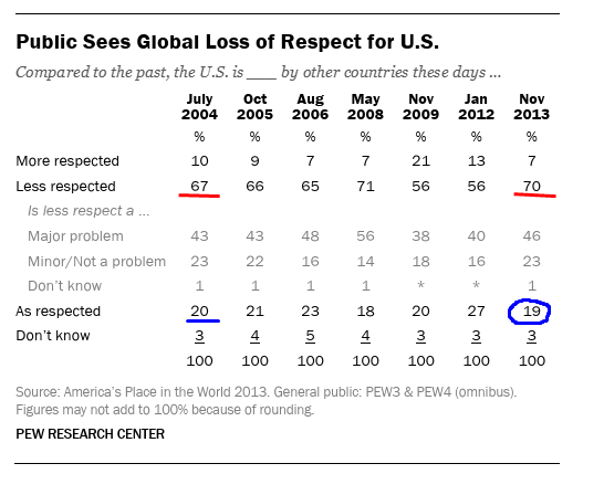 (1) 미국인 70%는, 국제사회 내 미국의 존경심 감소했다 답변,