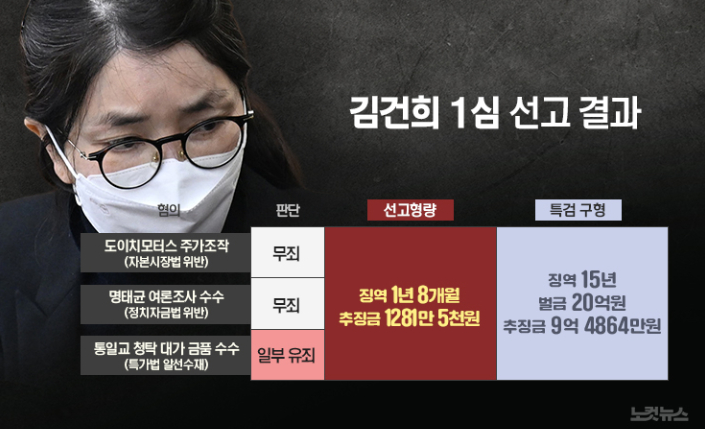 세상 뒤흔든 ‘V0 김건희’, 1심 판결 고작 1년8월이라니