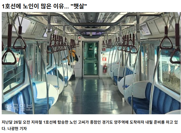 지난달 26일 오전 지하철 1호선에 탑승한 노인 고씨가 종점인 경기도 양주역에 도착하자 내릴 준비를 하고 있다. 나광현 기자