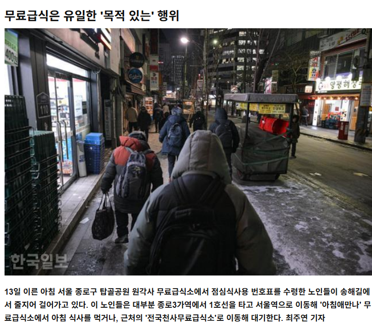 일상 자체를 무료급식에 맞춰 재편한 노인도