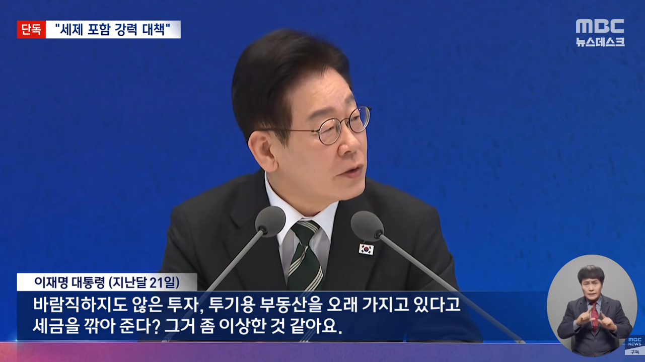 이 대통령은 최근에도 "투기용 비거주 1주택도 장기보유했다고 세금감면해주는 것은 이상해 보인다"고 지적했습니다.