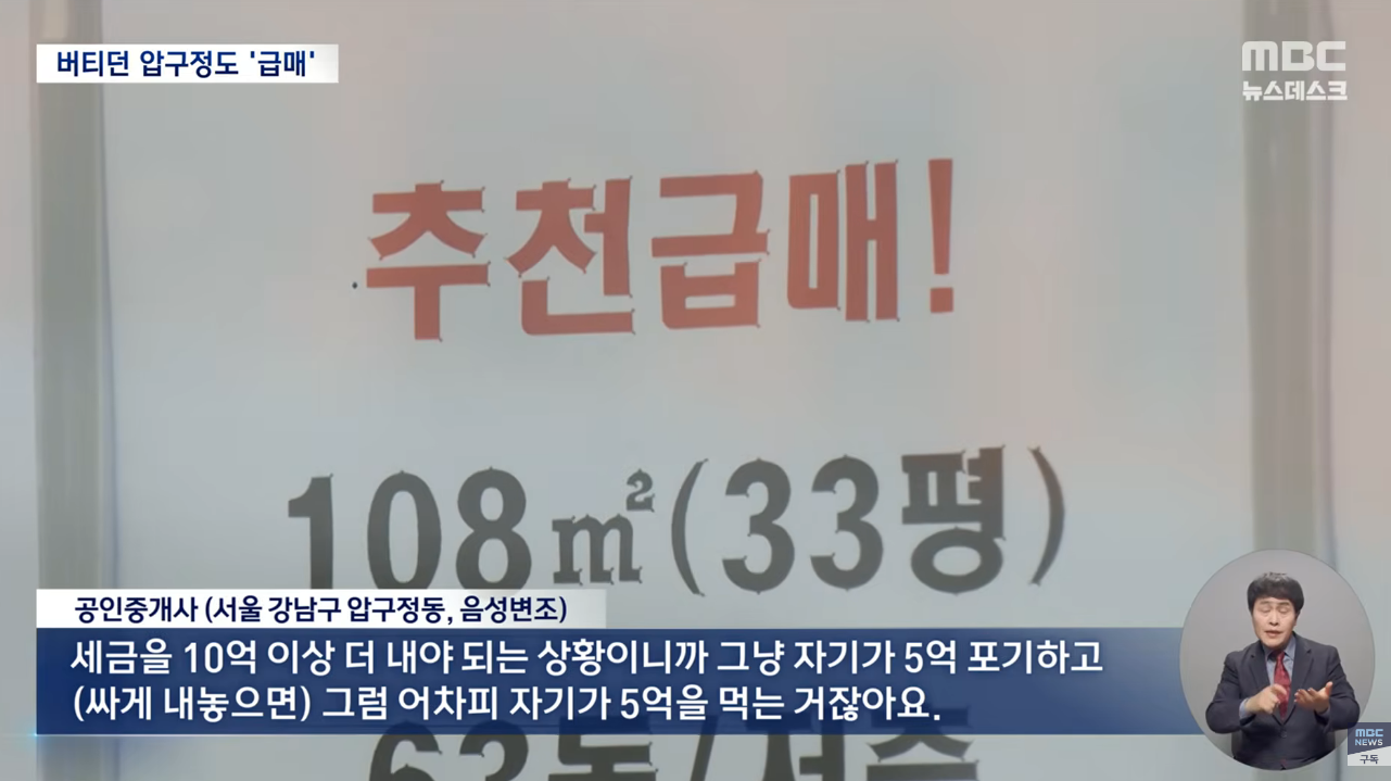 "세금을 10억 이상 더 내야 되는 상황이니까 그냥 자기가 5억 포기하고 (싸게 내놓으면) 그럼 어차피 자기가 5억을 먹는 거잖아요."