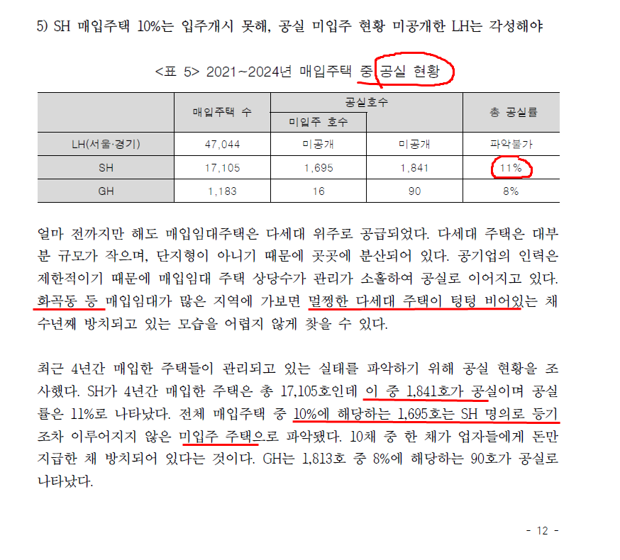 매입임대 공실 및 미입주 현황 SH·GH는 공개, LH만 비공개