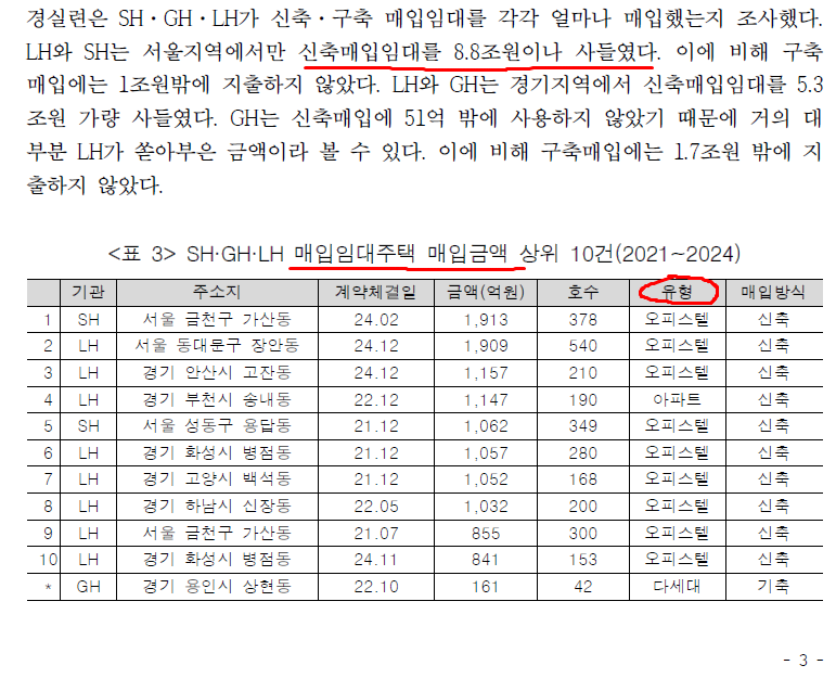 (5) 세입자들 강제 퇴거 발생. 신축매입약정의 문제점. (2021-2024) 서울 지역 신축(주택) 매입 8.8조, 구축(주택) 매입 1조원 지출.