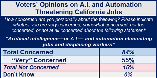 A statewide poll conducted last year by Teamsters California found that more than 80% of respondents were concerned about the impact of AI and automation on job availability.