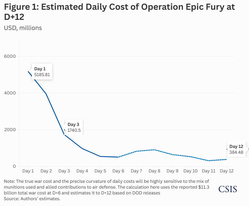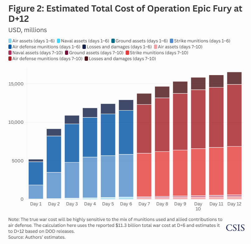 Iran War Cost Estimate Update: $11.3 Billion at Day 6, $16.5 Billion at Day 12