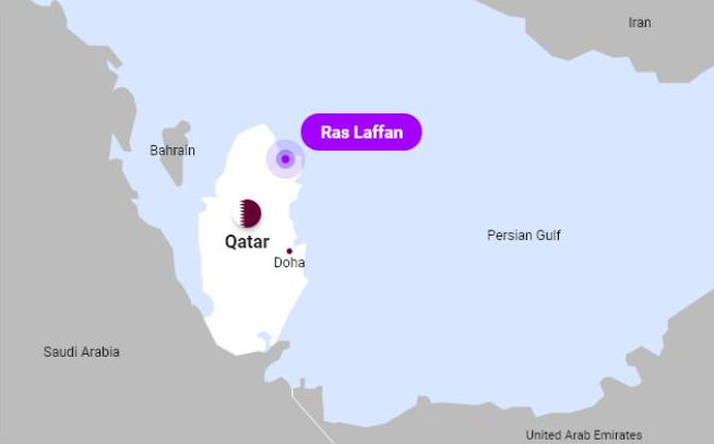 헬륨 생산지, 카타르, 라스 라판 (Ras Laffan) 위치.