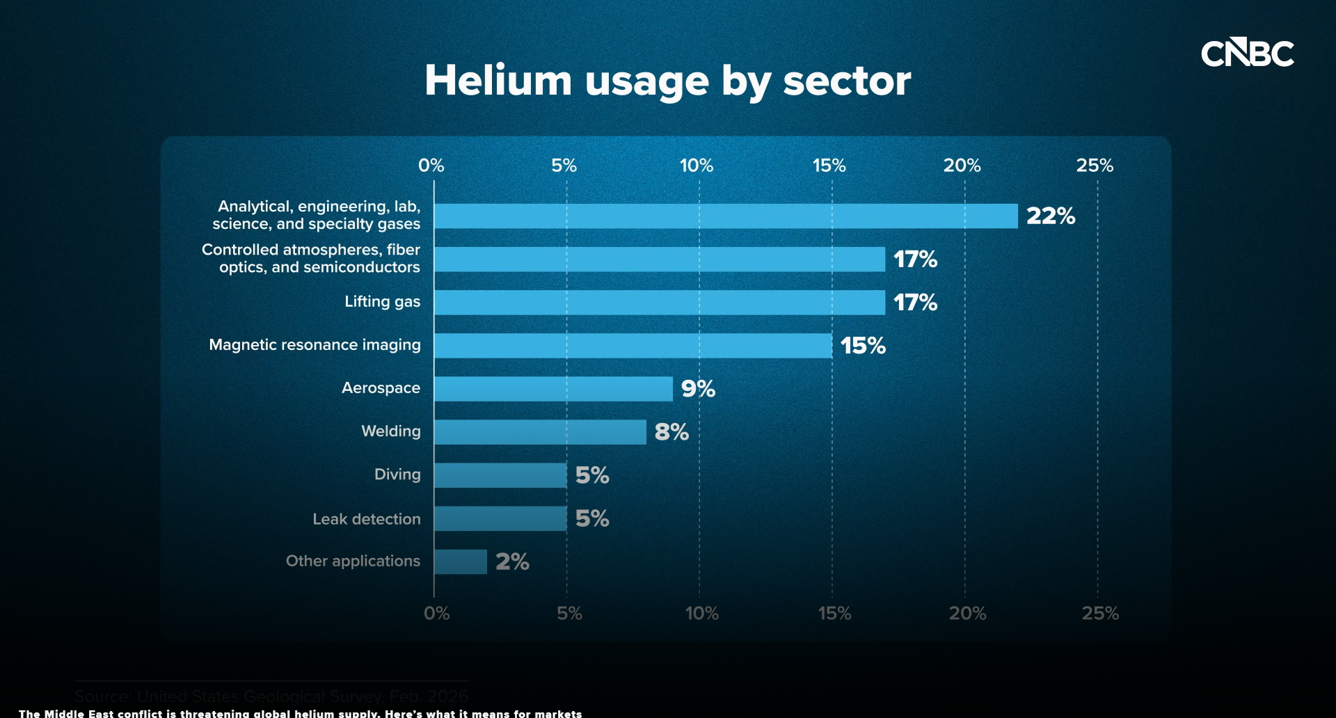 Iran has stopped ships from leaving the Persian Gulf through the Strait of Hormuz, so one-third of global helium supplies are simply offline.