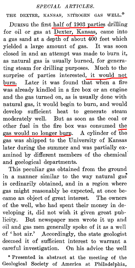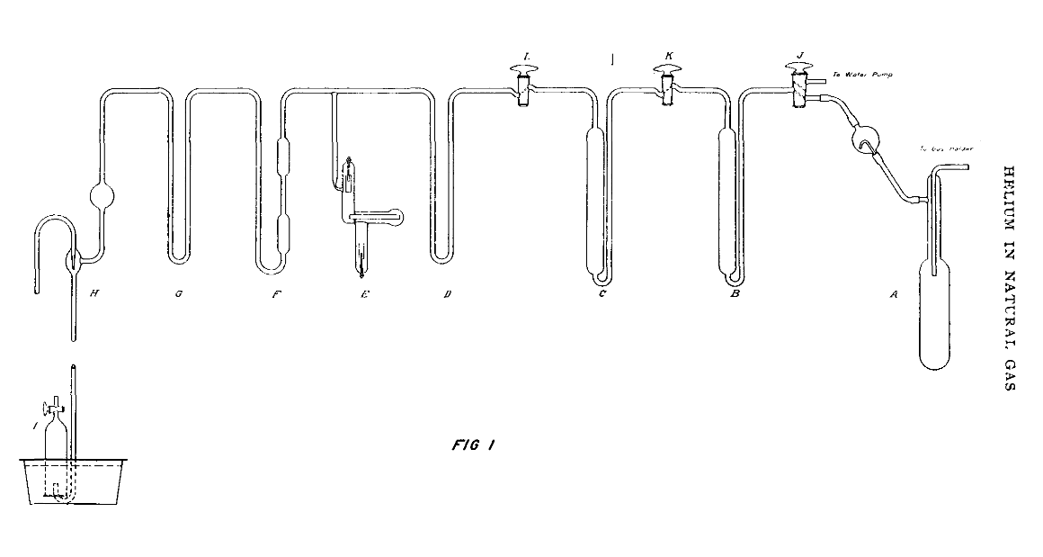 칸사스 주, 미주리 주, 오클라호마 천연 가스들을 실험 - 41군데에서 1군데를 제외하고, 모두 헬륨을 채취함.