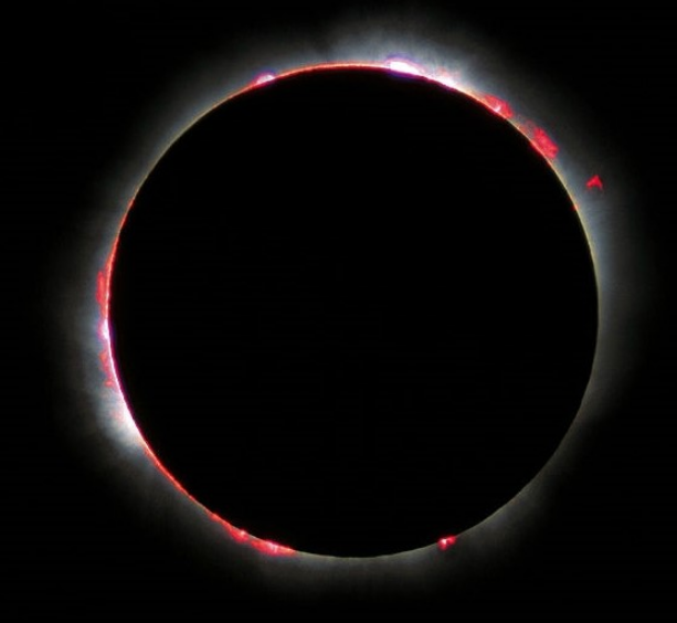 개기일식 때 보이는 채층 (태양 가장자리의 붉은 고리)