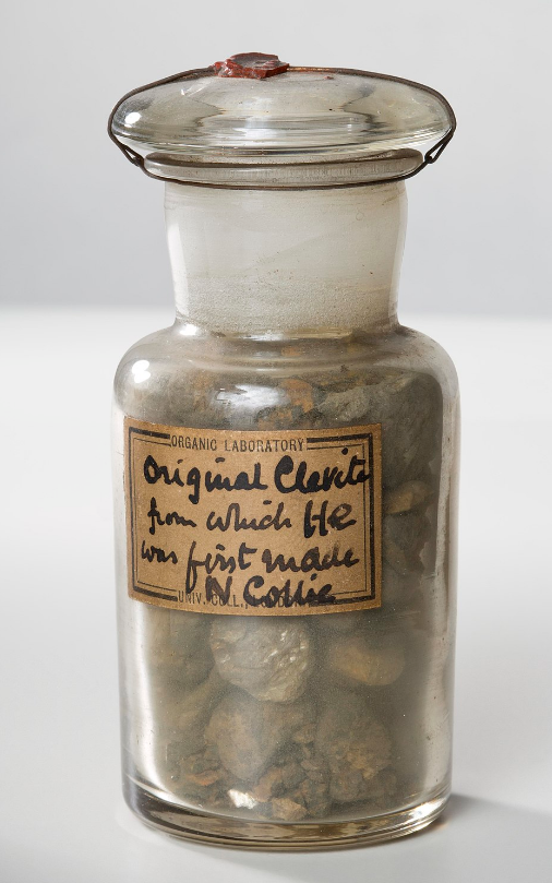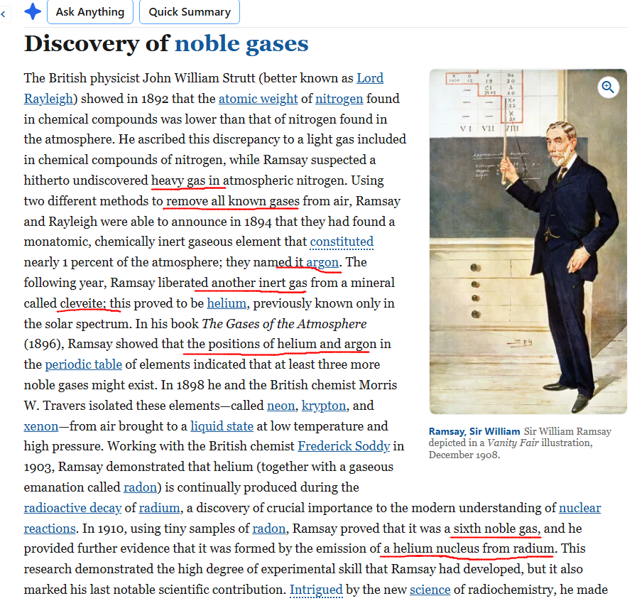 미국 지질학자 힐브란트가 클레베이트(Cleveite)를 산에 녹였을 때, 질소가 발생했다는 것을 읽고, 람지는 '질소'가 아니라, 아르곤이나 다른 종류의 기체일 것이라고 가정.