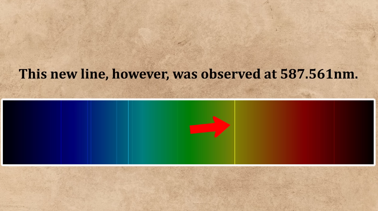 노먼 로키어는 이 노란선이 나트륨과는 다르다는 것을 깨닫고, 이를 새로운 원소라고 주장, 태양신 '헬리오스'의 이름을 따서 '헬륨(Helium)'이라 명명. 헬륨은 칼륨처럼 '고체'로 간주.