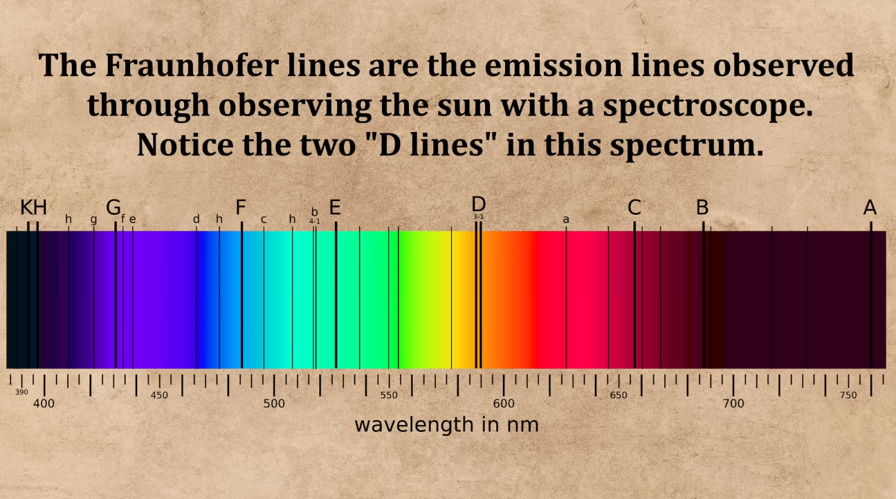 나트륨 (D선)의 노란 선 바로 옆에 더 밝고 선명한 노란 선 (D3)이 나타나는 것을 발견.