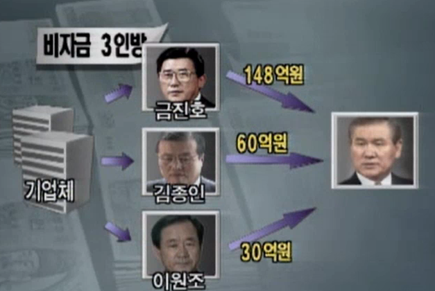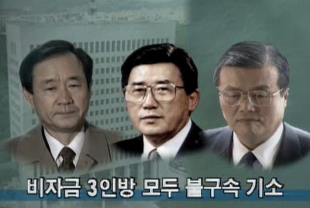 ● 기자: 민자당의 금진호 의원 148억9천6백만 원, 김종인 前청와대 경제수석 60억 원, 이원조 前의원 30억 원, 이른바 노태우氏 비자금 3인방으로 불리우는 이들은 238억9천6백만 원의 비자금을 조성하는데 개입한 혐의로 불구속기소 됐습니다.