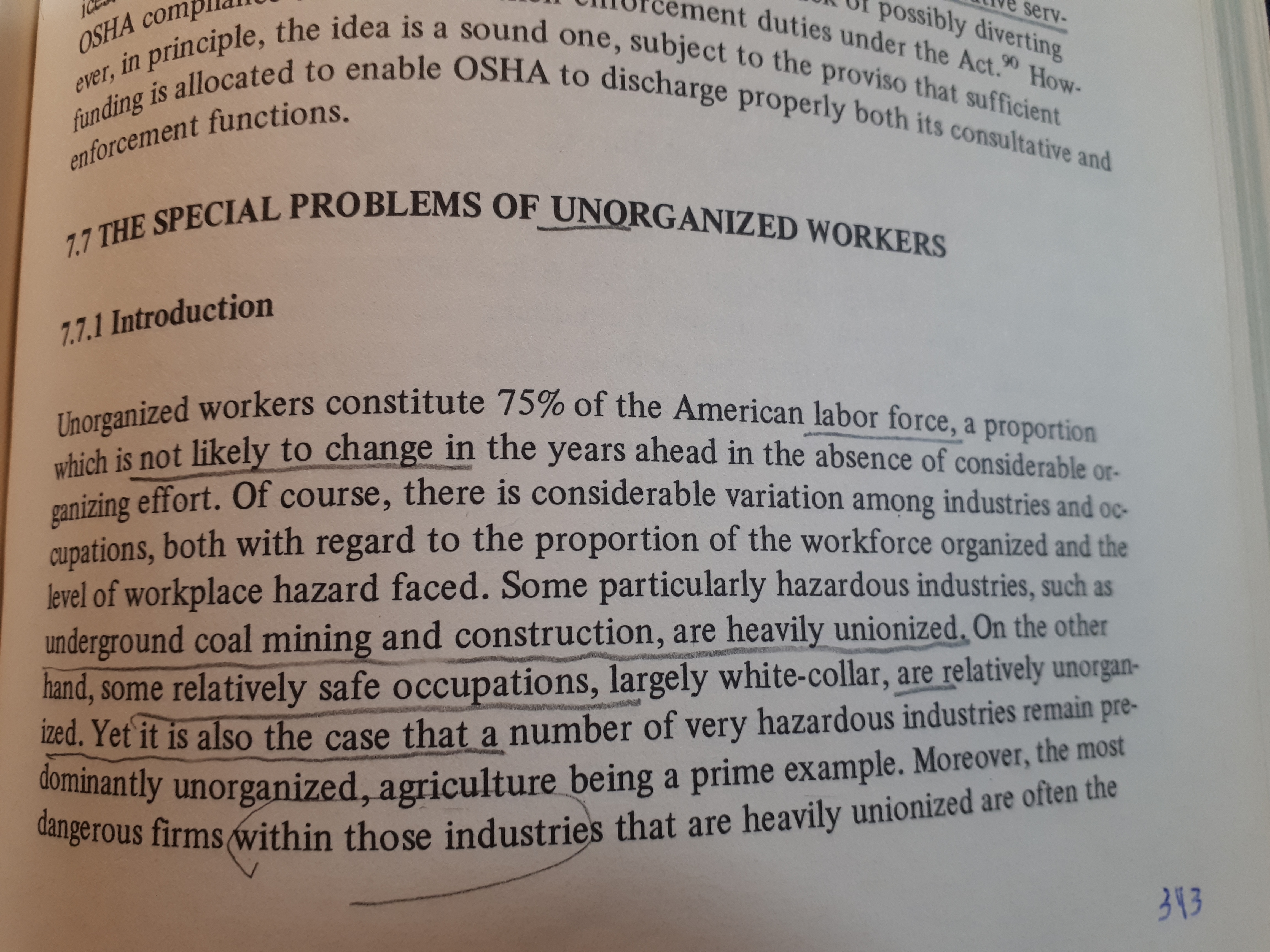 당시: 탄광, 건설 노동자의 경우 - 노동조합 조직율이 높음.