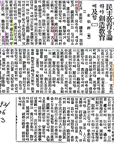 1921년 6월 13일 동아일보, 김우평 기자가 쓴 글이다. (현재 보수적 동아일보 시각과는 판이하게 다르고, 진보적이다) 상류,중류,하류층 자녀들에게 공평한 교육을 제공하자는 주장이다. 가난한 집안의 자녀들에게는 국가가 학비를 지급해 배움의 자유를 보장해야 한다. 교육에서 차별을 타파하는 것이 '문화적 민주주의' 내용이 되어야 한다고 봤다. 흥미로운 것은, '민주, 인민이 주인이다' 에 대해서 설명하면서, '민주주의'를 4가지로 분류하는 대목이다. 김우평 기자가 '민주주의'를 4가지로 다음과 같이 분류한다. (독재,왕권,전제주의에 반대한) 정치적 민주주의, 두번째는 생시몽, 푸리에, 칼 막스 등 사회주의를 포함한 '산업적 민주주의'이다. 산업(경제)적 민주주의와 사회주의를 동일시했다는 게 특징적이다. ..