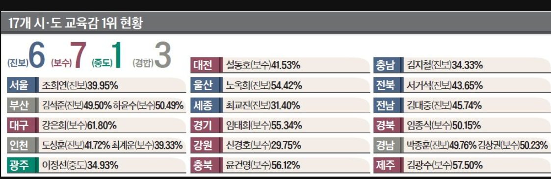 교육권력도 이동…경기·강원·충북·제주, 보수교육감 당선