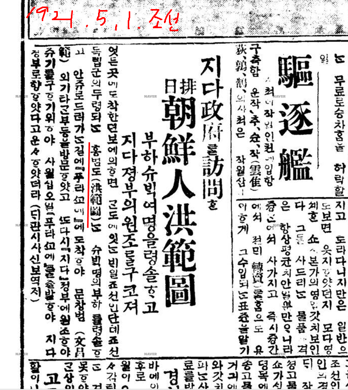 1921. 5.1. 홍범도 보도 (조선일보)