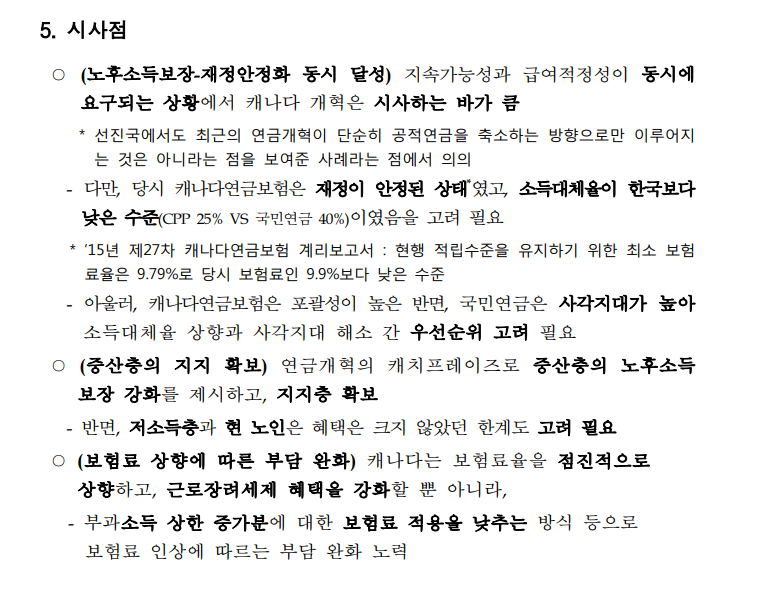 2000년 캐나다 한국 교민들에게, 캐나다가 한국보다 더 나은 게 무엇인가를 물었다. 미국에 비해서 세금이 많아서 '사회주의' 국가라고들 말했다. 그리고 연금 제도가 좋기 때문에, 은퇴하고 나서 노후 걱정이 없는 게 가장 좋다고 했다.